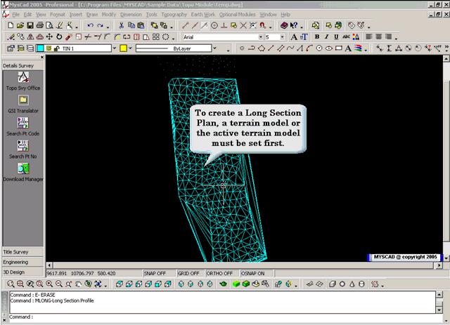 Long section & cross section design, volume calculations